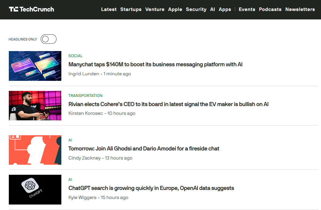 - TechCrunch - Artificial Intelligence: 국제적인 IT 전문 매체인 TechCrunch의 AI 섹션은, 글로벌 AI 기술 동향과 혁신적인 스타트업 정보를 신속하게 제공합니다. (https://techcrunch.com/category/artificial-intelligence/)